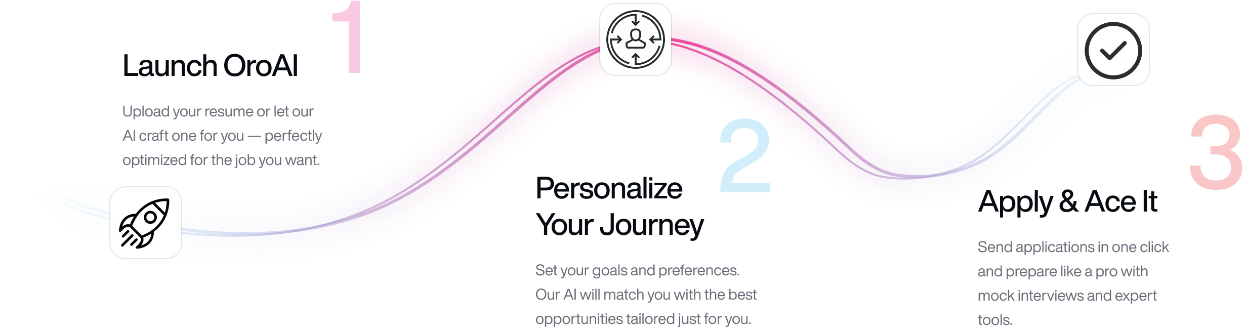 With ORO AI, make a stellar resume and optimize your LinkedIn within minutes , get personalized job recommendations and remain updated with the latest industry trends, outshine your interviews and land your dream job in less than 60 days. So launch yourself and get hired.